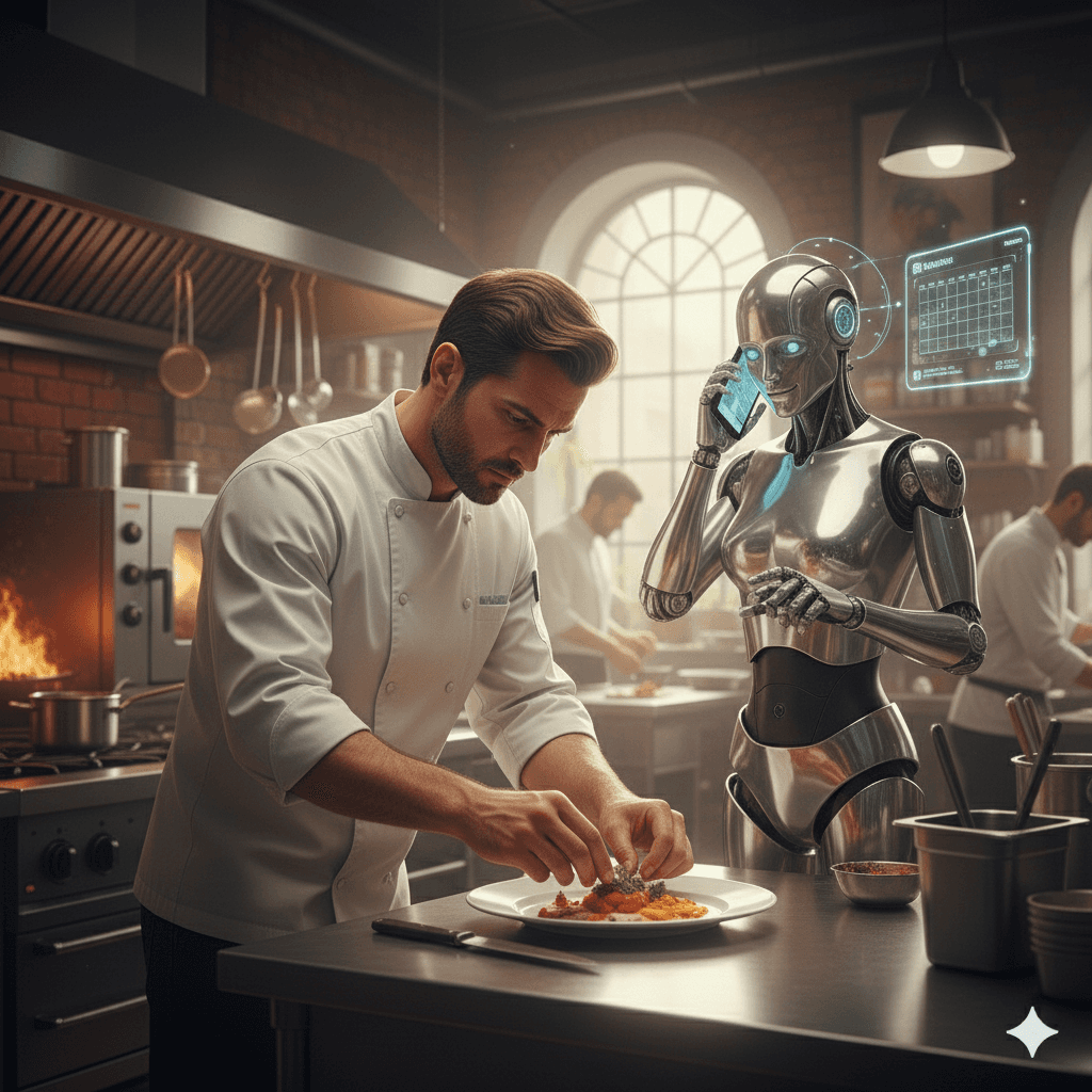 prend les commandes, réserve les tables et répond instantanément aux questions de vos clients.
